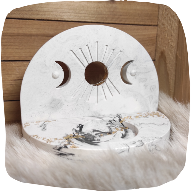 Photophore Lune, avec un bel effet d'ombre, pièce unique, deux couleurs disponibles : blanc ou noir.
